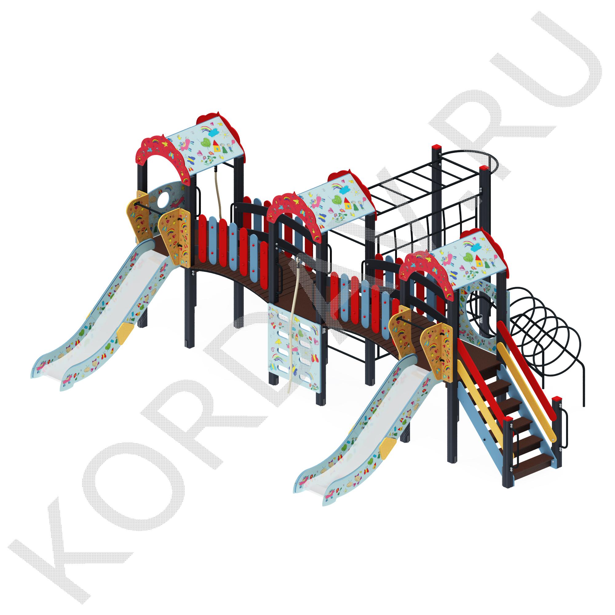 Три башни с двумя горками рукоходм и лазилкой ПДИ 2.19